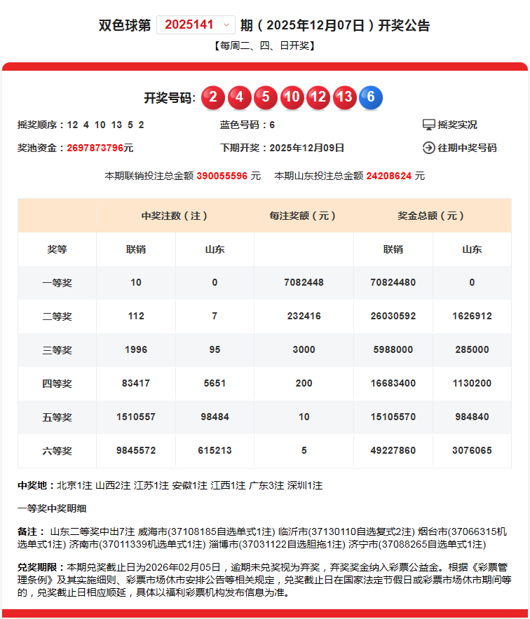 第2025141期开奖